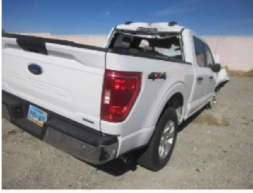 These photographs were included in the 30-page billing packet Enterprise sent to Jessica Markle. They are Enterprise’s own documentation of the vehicle’s post-collision condition. Roof panel destroyed. Cab structure compromised. Airbags deployed throughout. Frame damage. Front-end obliterated. These are the photos that exist in the same file as the document that says “No Injury” and values the truck at $23.00.