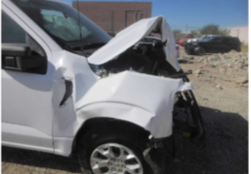 → View $23.00 ACV Invoice — PDF → View ACV Settlement Confirmation — PDFTen days after the collision, estimator Albert Koshkaryan at All City Sunset in Henderson, Nevada produced a 155-line repair estimate on the same VIN under the same Claim #21684170. Line items include: frame assembly ($4,649.40), roof panel ($1,239.87), both headlamp assemblies, instrument panel with 12″ display ($1,004.68), all four airbag systems, cab structure, windshield, full pickup box, radiator, cooling system, and a complete front-end rebuild. Total: $38,050.96. Insurance Pay: $38,050.96. Paid in full. Through their own insurance pipeline.